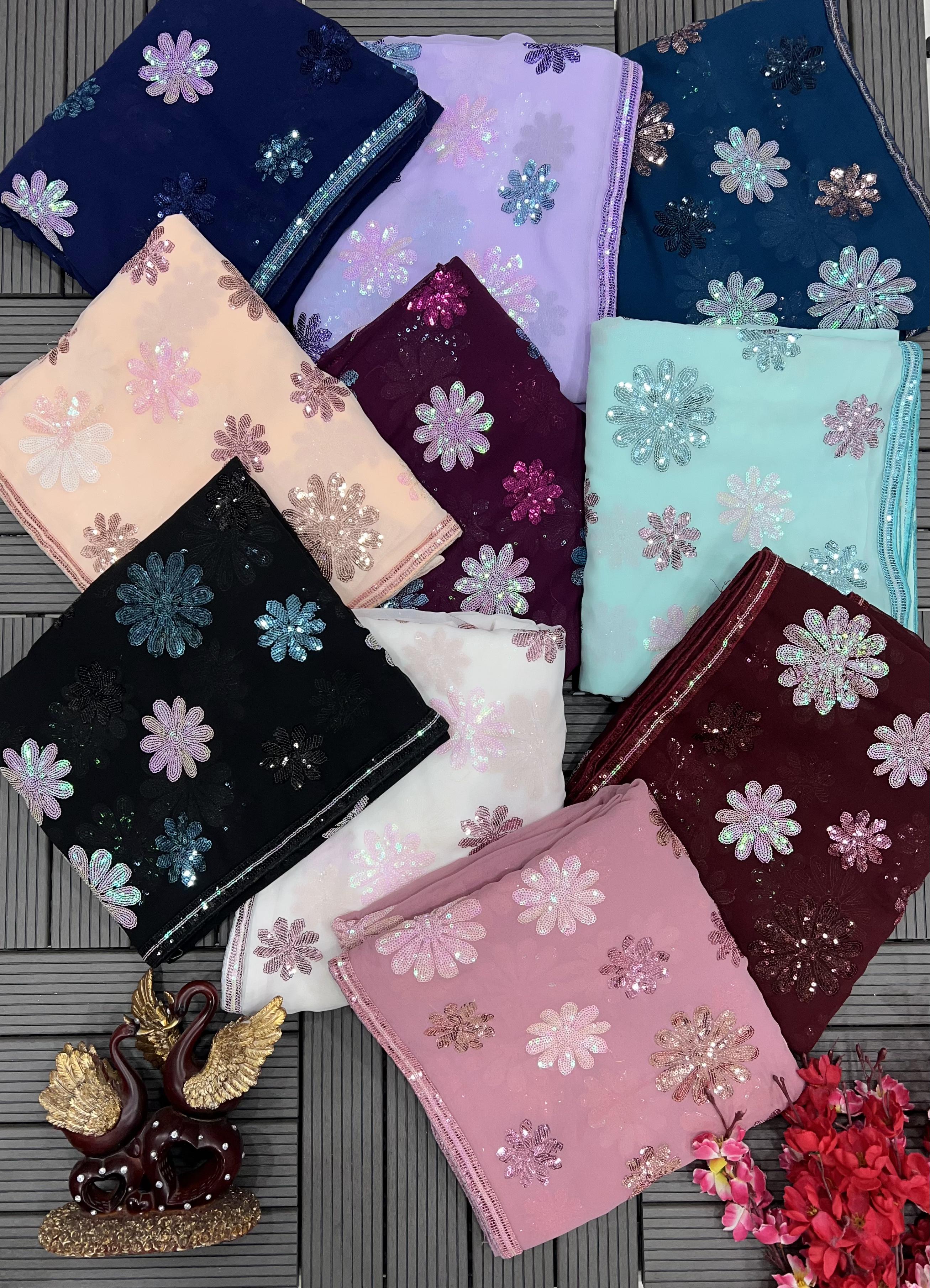 Jazz up your wardrobe with our statement saree. Made with georgette fabric in multicolor showcasing the sequence details that is deal for any occasion